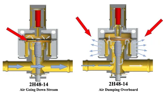 When the boots are off, this same valve simply dumps all or most of the air pump’s pressure output overboard.